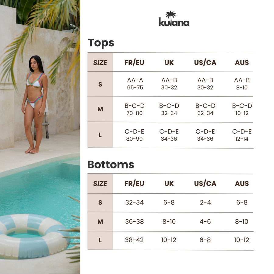 - Size equivalence for KULANA bikinis